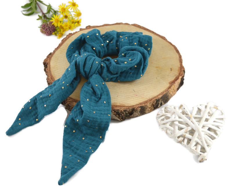 Ces chouchous à ruban sont réalisés en coton ou double gaze de coton.