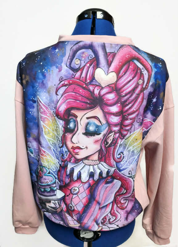 Sweat femme personnalisable avec illustration Amandine Jung imprimée dans le dos. Choisissez votre modèle parmi 43 illustrations et 5 coloris de tissu sweat uni pour créer un vêtement unique.