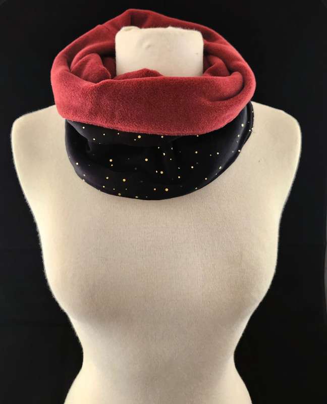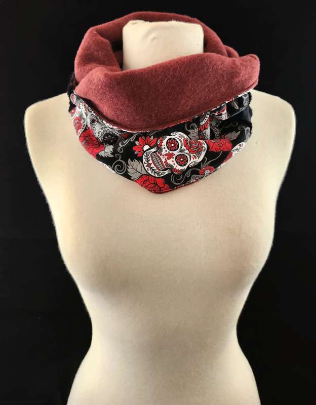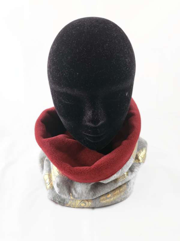 Superbe tour de cou à enfiler. Chaud et haut, il vous protégera parfaitement du froid lors des fraîches journées d’automne ou d’hiver. Vous pourrez porter le cache cou complètement déplié, il pourra ainsi vous protéger jusqu’au nez, ou le replier sur lui-même comme un col roulé.